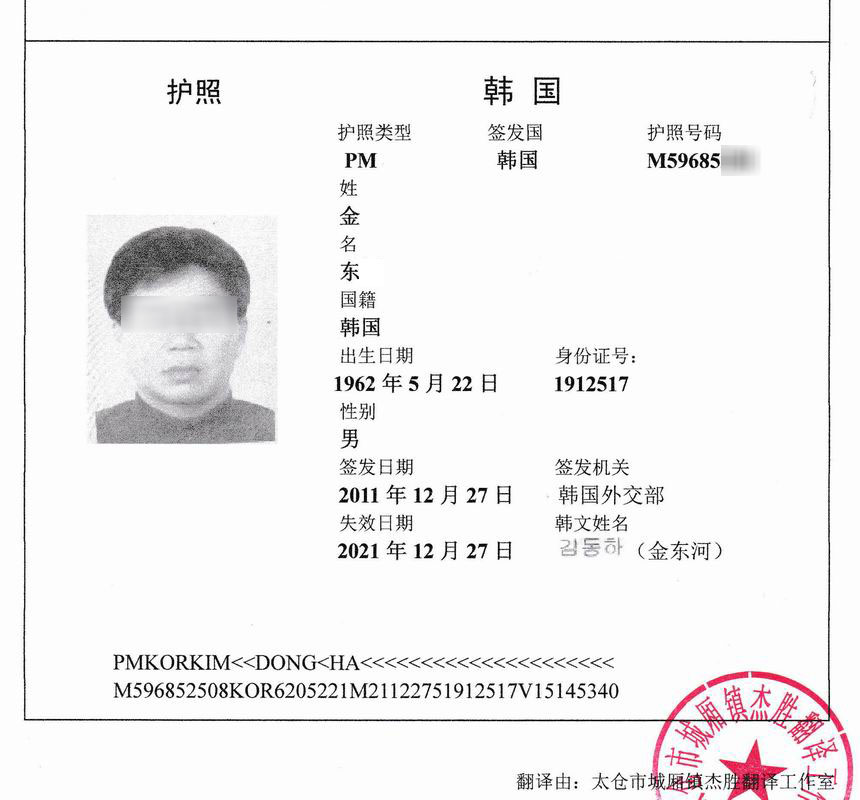 • 韓國護照翻譯