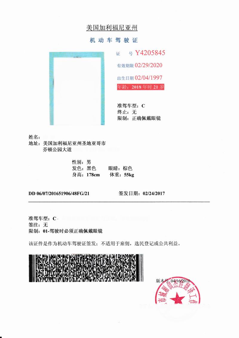 • 美國駕照翻譯